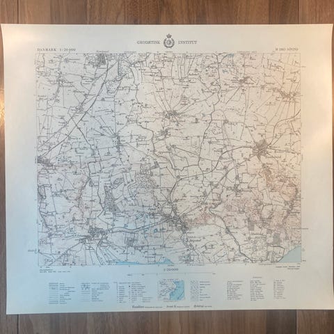 Vægkort fra 1951: Havnstrup og omegn (perfekt stand)