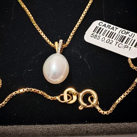 Perlen har en top af sølv og kæden er lavet / designet af en lokal sølvsmed.