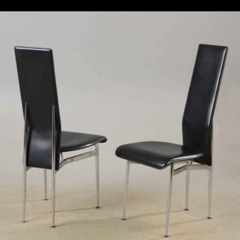 Gastone Rinaldi italiensk designer stole fra 70’erne. Med originale sorte læder hynder, de kan tages af. Stel i krom, meget behagelige at sidde i. I god stand trods sin alder.