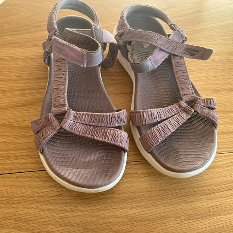 Sælges sketchers kilekæle sandaler størrelser 37 i fin stand Sorte sandaler med sølv i den velkendte Skechers komfort med superblød sål jeg bruger str 38 og de er str 37 men passer mig fint stor i størrelsen svarer til størrelse 38