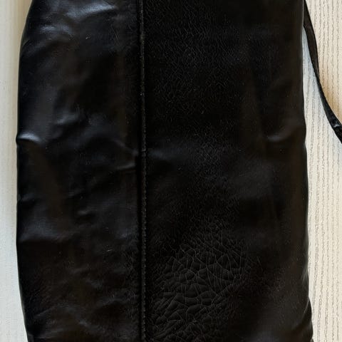 Brugt håndtaske med lette brugsspor, mest på klappens inderside.