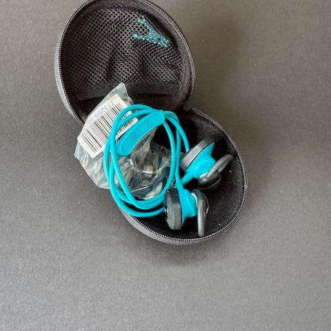 Trådløse BOSE sports in-ear headphones. Anvendt til løb - sidder godt og fast!