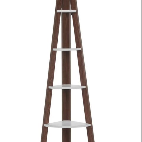 Denne hjørnehylde i træ er en elegant løsning til at udnytte vægpladsen optimalt i ethvert rum. Denne hjørnehylde er designet til at hænge frit og trodser tyngdekraften på en stilfuld måde, der giver et luftigt og moderne udtryk. Med sin runde front tilføjer den en blød æstetik og kontrast til de skarpe linjer i et rum, hvilket skaber en indbydende atmosfære. Hyldens praktiske design gør den ideel som både bogreol og dekorationshylde. Den kan nemt rumme bøger, små planter, eller personlige pyntegenstande, hvilket gør det nemt at personliggøre din indretning. De tre hylder giver rigeligt med opbevaringsplads uden at optage gulvareal. Den varme trænuance bringer naturen ind i hjemmet, hvilket skaber en hyggelig og jordnær atmosfære.