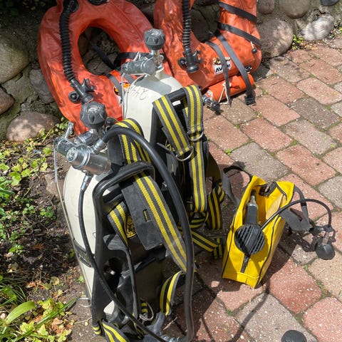 Her sælges Ældre, men meget lidt brugt, super dykkerudstyr. Flaske skal have service og luft, men så er du klar til gode sikre undervandsoplevelser.