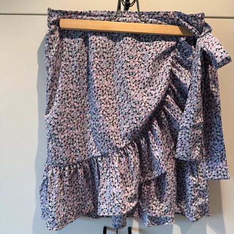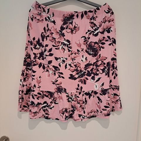 Divided grøn og blomstret nederdel str 32. Længde 69 cm. Med høj slids