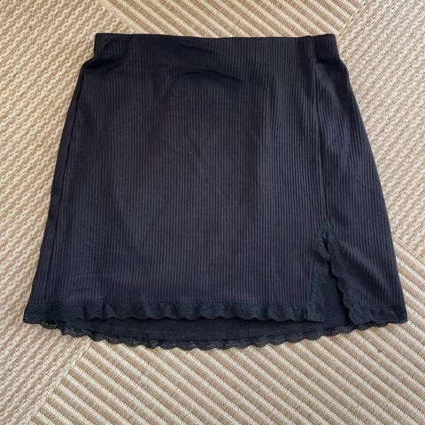 Divided sort nederdel str 32. Længde 69 cm. Med høj slids. Matr 100% viscose