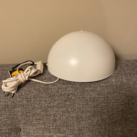 Designet med matteret glas og sort base, der passer ind i de fleste rum. Medfølger meget lang ledning (ca. 4,3 meter), så den er nem at placere, hvor du har brug for ekstra belysning. Bruger halogenrør (inkluderet).