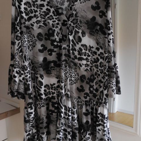 Bluse, tunika, str. 44, hvid m mørkeblå prikker.