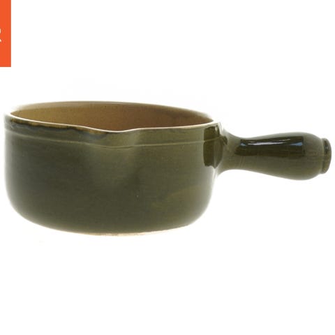 Den kan ikke bruges i ovnen, men den kan godt bruges på gas og over bål.