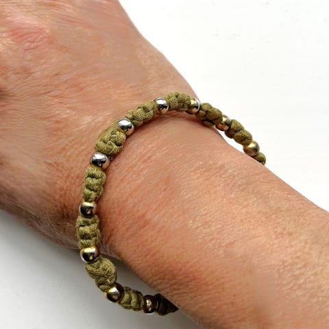 Fint knyttet armbånd i sort med en rose og kugler i seabamboo. Jeg bruger selv 18 cm. i almindelige armbånd, men armbåndet kan reguleres.
