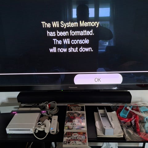 Nintendo Wii med controller + nunchuck, masser spil (4 versioner Just Dance, Wii Sports mm.) og Wii Fit board.
