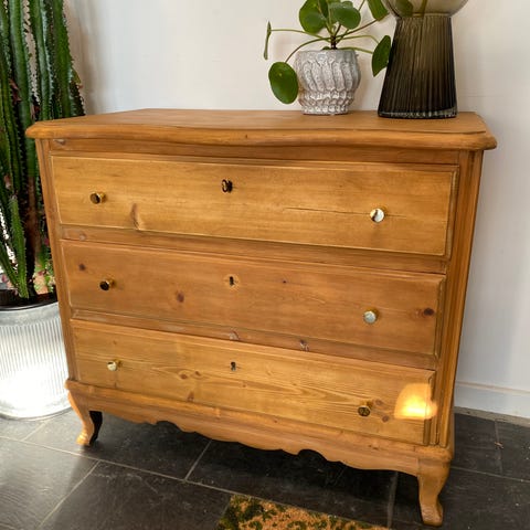 Lille fyrtræs kommode med messing detaljer