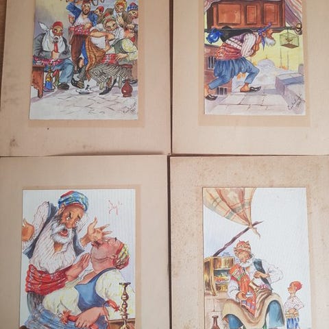 Fire rammer med indramninger af Henrik Olriks (1830-1890) tegninger af Herman Ernst Freunds (1786-1840) Ragnaroks frise, som blev udsendt til Kunstforeningens medlemmer i 1857. Indrammet 27 x henholdsvis 136, 138, 173 & 174 cm