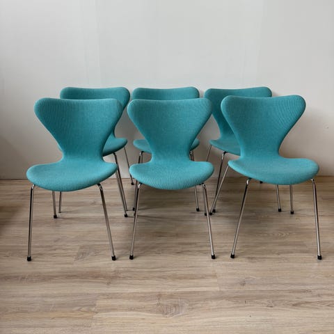Arne Jacobsen stol produceret hos Fritz Hansen model 3107. Virkelig skøn og dekorativ stol i meget god stand, dog er den lidt falmet (bør dog ses) Lækker siddekomfort grundet den flotte velourpolstring.