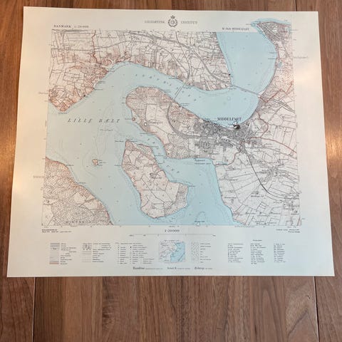 Vægkort fra 1955: Hjelm og omegn (perfekt stand)