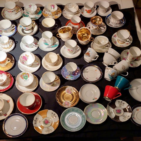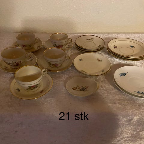 Meget fine epiag mærke mokkakopper der har forskellige farver. De er som nye undtagen en lyserød underkop med et lille hak på kanten.( se det sidste billede.) Der er 11 sæt.