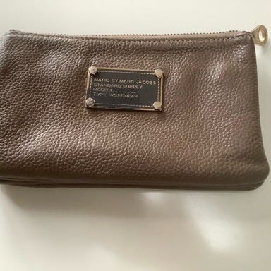 Sort kernelæder pouch fra Marc Jacobs i meget fin stand. Jeg kan intet slid eller andet se på den. Måler 16 x 22 cm. Den kan også bruges som en lidt større pung.