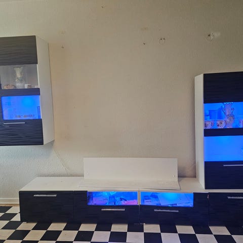 3 skabe til ophæng på væg. Hvert skab er HxBxD: 50x122x32