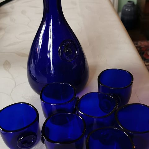 Glas, Viking karaffel med glas, Holmegaard, Blå viking karaffel fra Holmegaard med glas fra 1962. Perfekt stand.