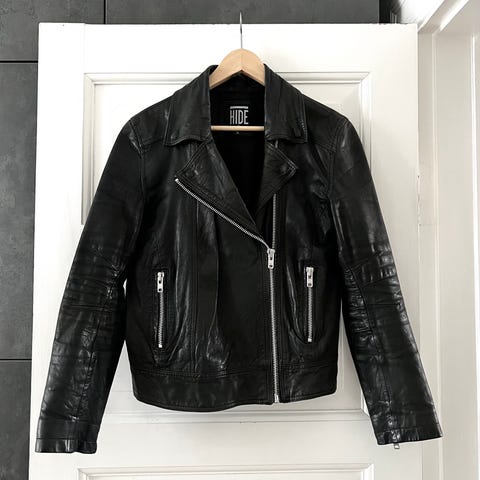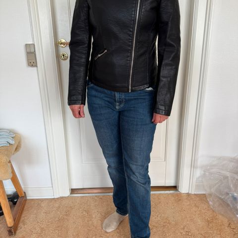 bikerjakke bikerjacket damejakke str 36 str small læderjakke læderbikerjakke læder leatherjacket leather biker jacket frakke damefrakke dame frakke læderfrakke sommerjakke forårsjakke