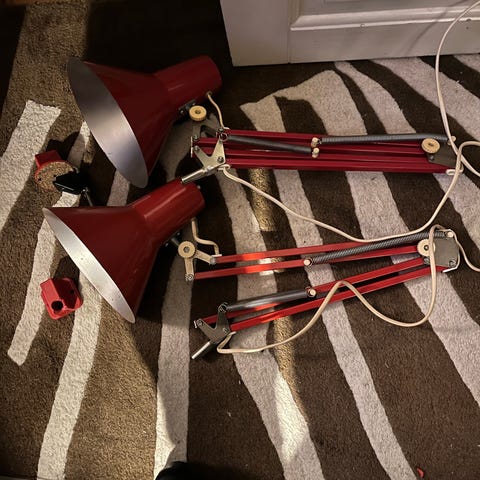 Lampen kan bøjes i mange forskellige positioner og er med tænd og sluk knap.