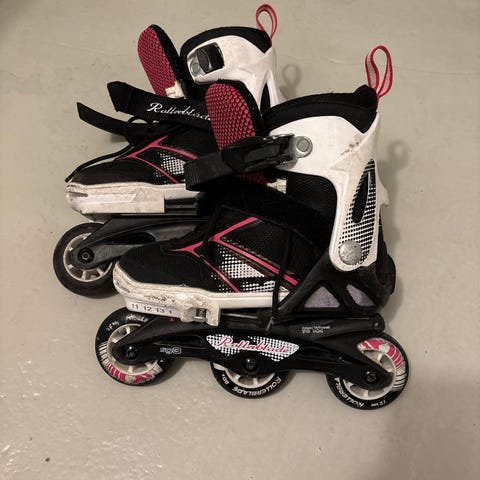 Rulleskøjterne er kun lidt brugt og fremstår i god stand.
