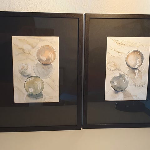 3 SØDE AKVARELLER I LILLE GLASRAMME,