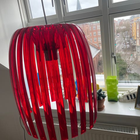 Fin designer Pendel lofts lampeskærm fra tyske Koziol, model Josephine M i lilla farve. Plastik materiale.
