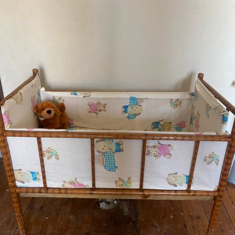 Smukkeste vintageseng i bambus med den helt lækre patina. Alt er intakt og hjul kører fint.