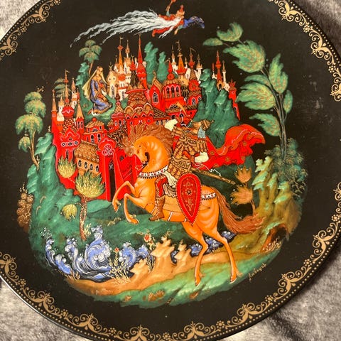 Fine porcelain gold-plated Royal Worcester collector plate of Legends of the Nile 1990. 18 cm