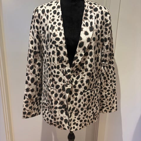 Sort blazer fra J. Crew med elegante detaljer. Det er en størrelse 4, hvilket svarer til en s/36. Materialet er 40% uld og ellers polyester og akryl.