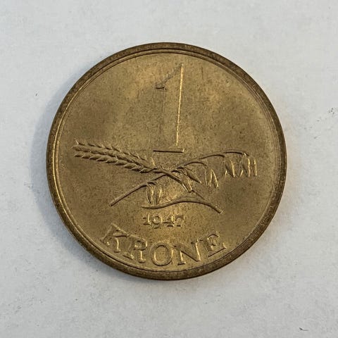 1 krone 1943, sværeste årstal i en pænere kv. 1 (+) - se billeder