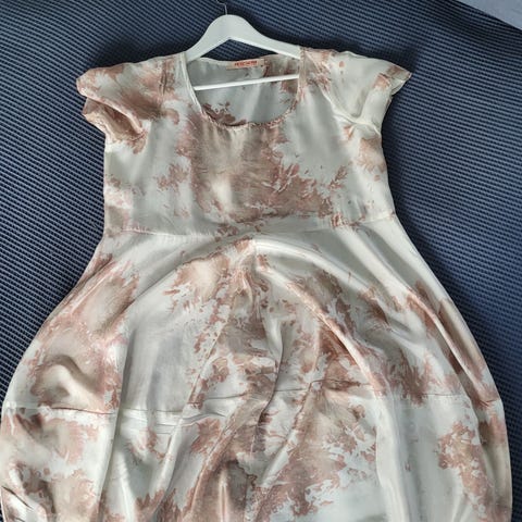 Smuk kjole i silke (yders) og hør (inderst), falder så flot.