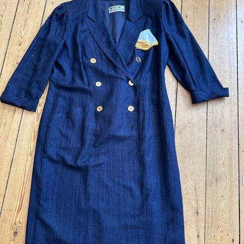 længde fra skulder 92 cm, liv 76 cm, bryst 86 cm- går til midt lår