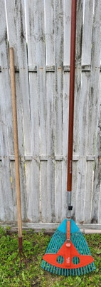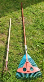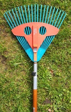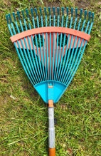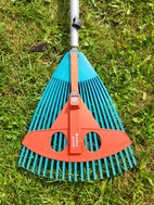 Træskaft udført i hårdttræ og er af høj kvalitet. Den justerbare GARDENA combisystem-rive af plast er ideel til sammenrivning af blade, afskåret græs, luftet materiale og andre plænerester. Afstanden mellem de fleksible plasttænder kan let justeres. Arbejdsbredden på 35 til 52 cm. gør det muligt at samle både fint og groft affald. Brugt ganske få gange, god stand. Pris - 150 kr.