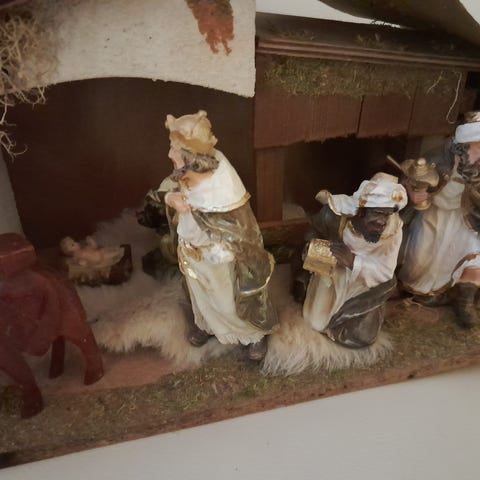 Vintage dessiner krippe, Meget fin vintage dessiner krippe ,julepynt , figuren i pap , papir og hoveder og dekoration i kunst
