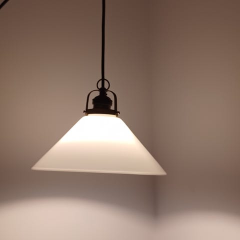 Vintage Glaspendel i Hvid og med messingtop
