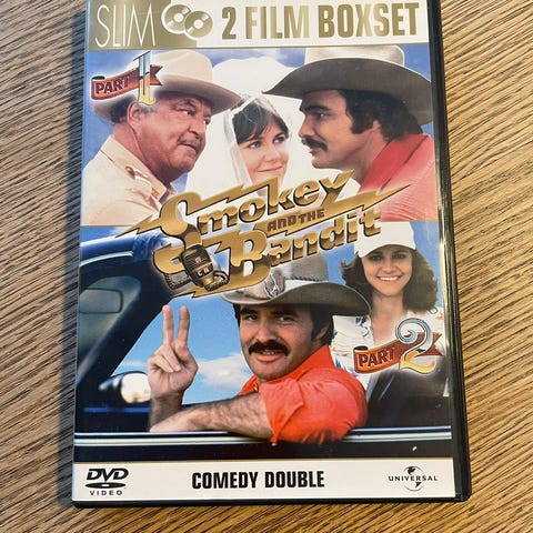 Boks med alle tre klassikere med Burt Reynolds og Sally Field på flugt fra Sheriff Buford T. Justice (spillet af en herlig Jackie Gleason).