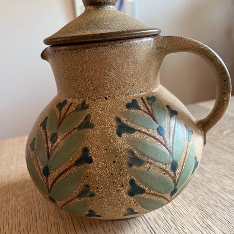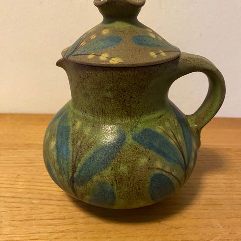 Keramik, Kande, Dybdahl, Smuk kande fra Dybdahl Keramik. Den er i flotte grønne, gyldne og sorte farver.