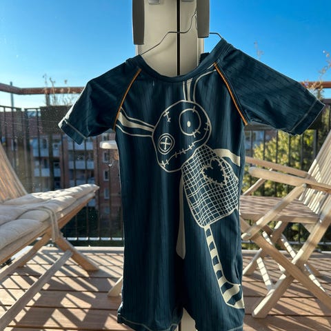 Uv dragt. Den er pink og navy. Str 7-8 år. Sender på købers regning. Den vejer 130 gram