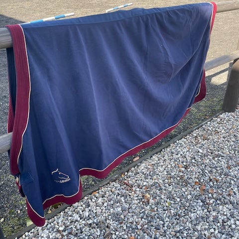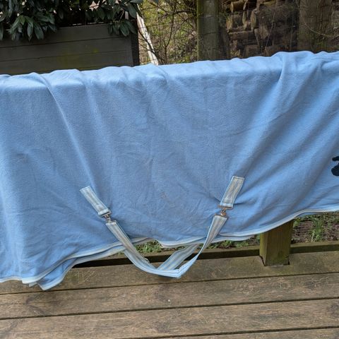 Navy fleecedækken str 125 i lækkert og blødt materiale med lysegrøn kant. Nyvasket, men stadig lidt hår tilbage. Brugt meget begrænset. Nypris var 499 kr. Ingen fejl/mangler. Kan sendes.