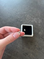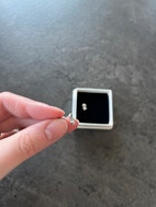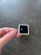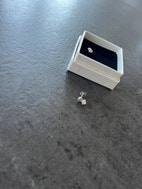 Øreringe fra ukendt mærke. Ægte sterling sølv 925. Cyntetisk zirkonia. Hjerte, der bærer stenen. Måler cirka 8 mm i højden. Brugt nogle gange, men fejler intet. Er pudset og renset i sølvrens.