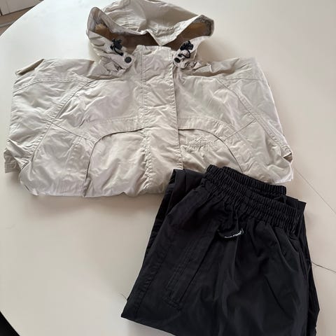 Lyserødt retro regntøj. Tror det er en str M, måske L. Elastikkerne ved håndleddet er løse og lynlåsen skal syes på for neden. Ellers fint. Lavet af polyamid. Evt. Bruges til noget udklædning eller retro/nostalgi fest. Giv et bud.