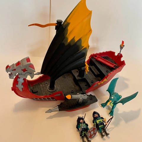Der er en ting med lys i, men hovedet er knækket af, det kan limes. Den ene drage er også lidt medtaget, derfor prisen.