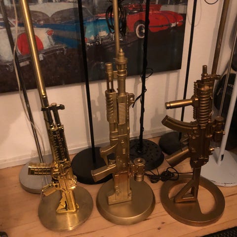 Disse salt- og peberbøsser i snehvidt glaseret porcelæn er et ret kantet indslag til middagen. De er lavet med udgangspunkt i M1911-pistolerne, der blev brugt af den amerikanske hær. produceres ikke mere.