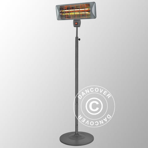 Fritstående terrassevarmer med en 2000 watt karbonlampe, der udsender en skøn varme, som kan være med til at forlænge dine skønne aftener udenfor. Den elegante terrassevarmer er nem at betjene ved hjælp af den medfølgende fjernbetjening. Desuden er apparatet nemt at flytte, hvis du har brug for at holde varmen et andet sted end du plejer. Vælg mellem tre niveauer af varme – lav, mellem og høj.