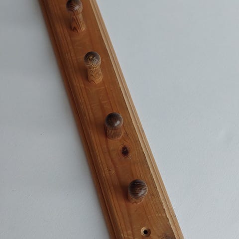 5: Knagerække m/2 knager med porcelænsknopper, brunlig drivtømmer…149,-