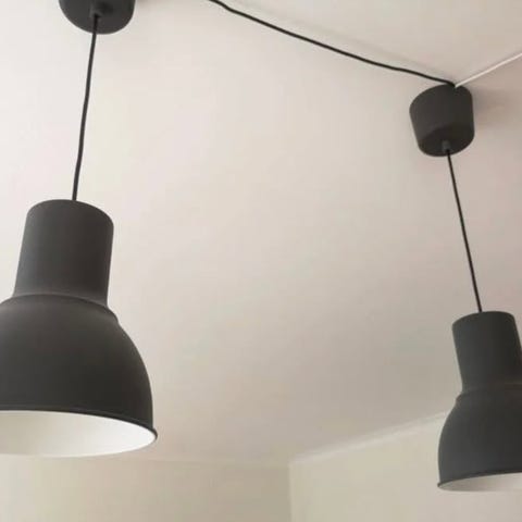 Ældre Ikea Hektar, midt imellem de højder som sælges i dag, bruges som sæt eller enkeltvis, sælges samlet, ledningslængder er 125cm. Max 53 Watt.
