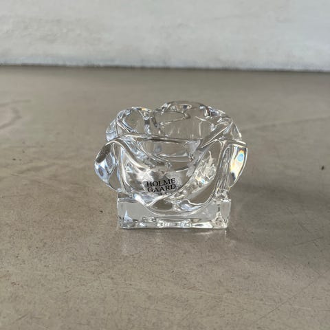 Glas lysestage med flettet stilk og stor krave