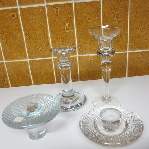 Lysestage, glas med snoet stilk